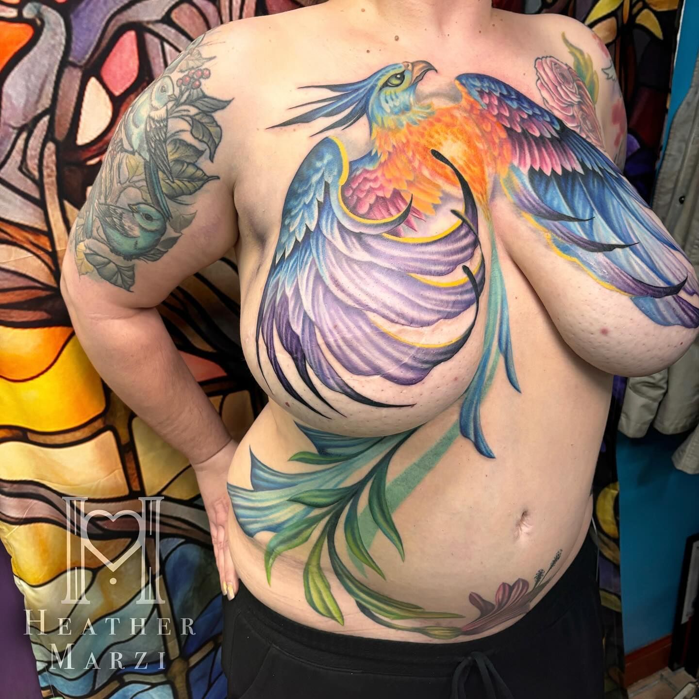 In addition to traditional body art, Heather has recently graduated from Terry Lively's 3-D Areola Reconstruction Class, held by The Tina Davies Collective. Presently, she is taking consultations to perform areola tattoo procedures for breast cancer survivors, and for trans individuals that have undergone top surgery. Being able to perform these procedures has been a career goal for Heather and she’s very excited to be able to add this service to her repertoire.