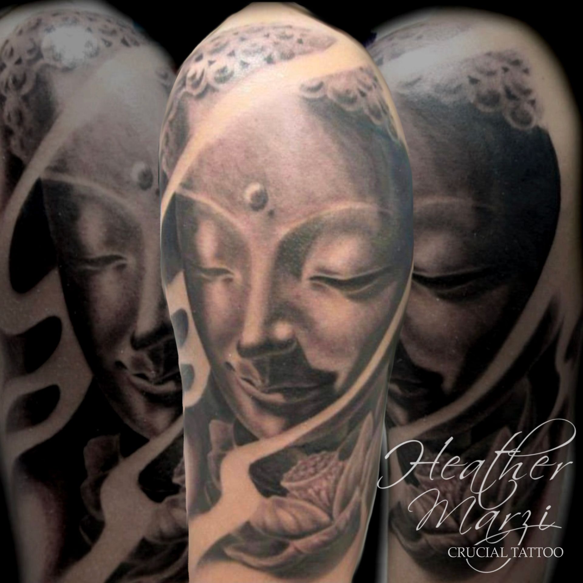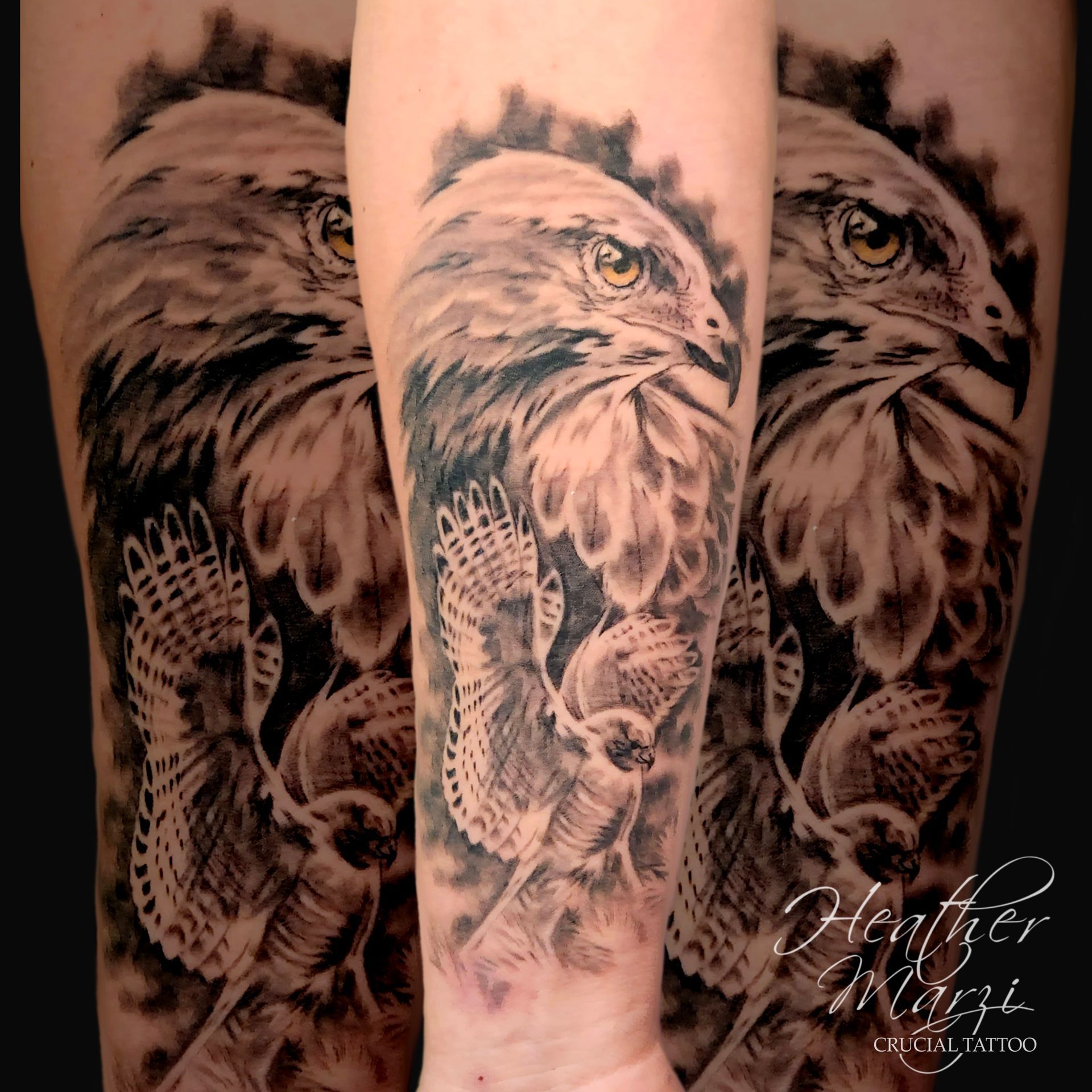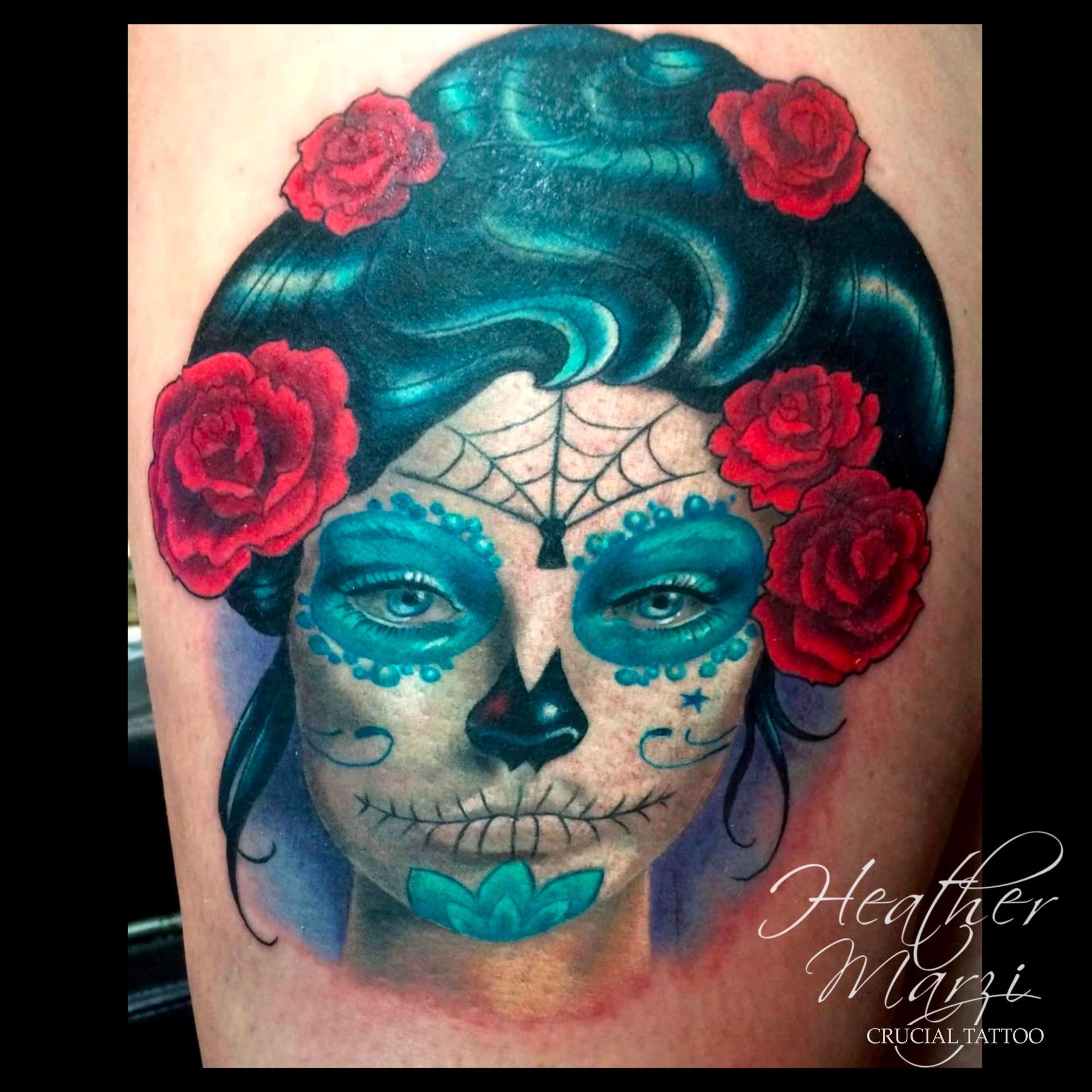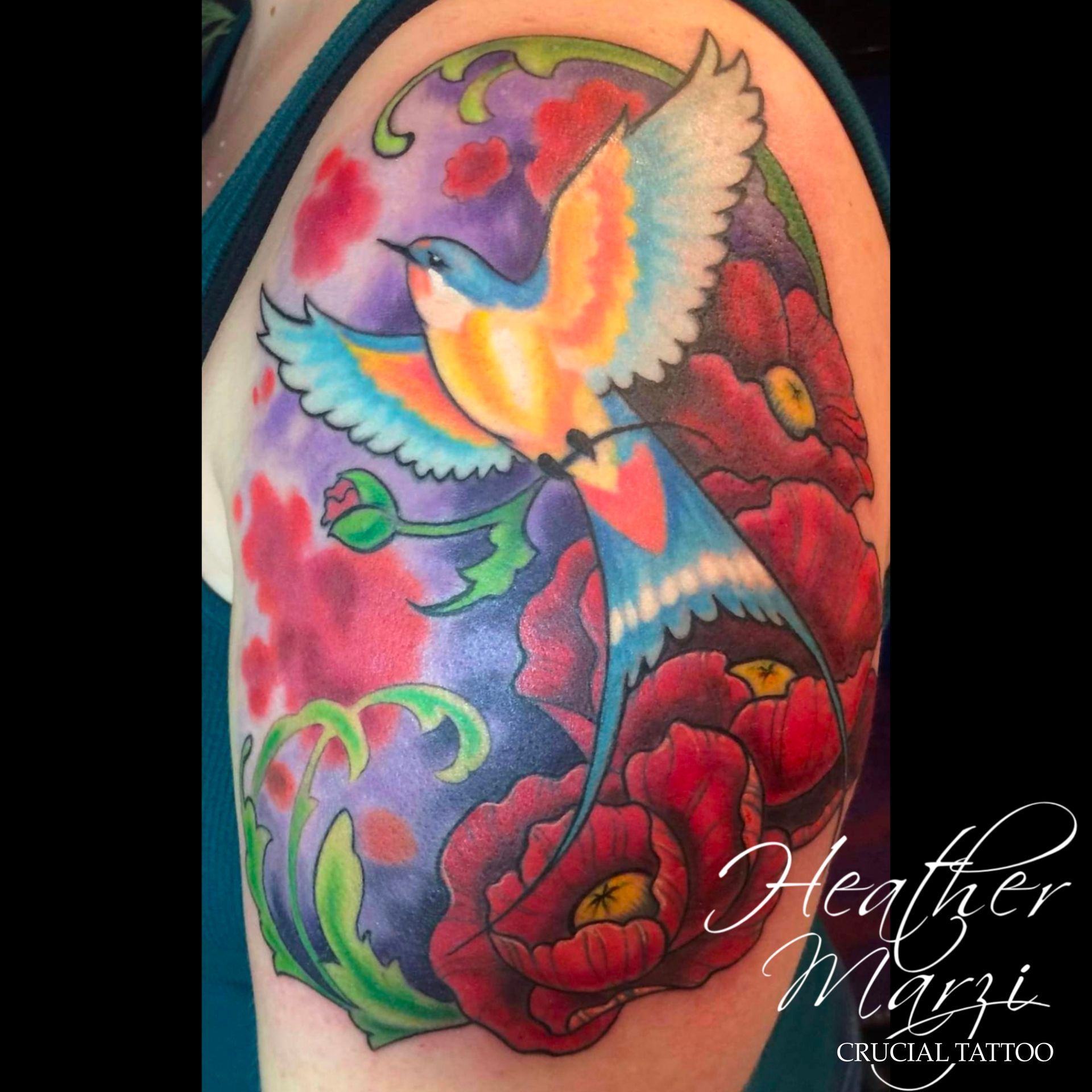 Heather's artistic background has lent itself well to her tattoo style. She began working with pencils, watercolors, and oils when she was a child, and her tattoo style definitely reflects the years she spent studying with these mediums. Her artistic style can range anywhere from painterly fantasy to illustrative neo-traditional to realism and portrait style. With each tattoo, she will consult extensively with her clients to decide the best way to approach each design. Ultimately, her highest priority is to see the client’s vision executed in the most beautiful and flattering way possible.