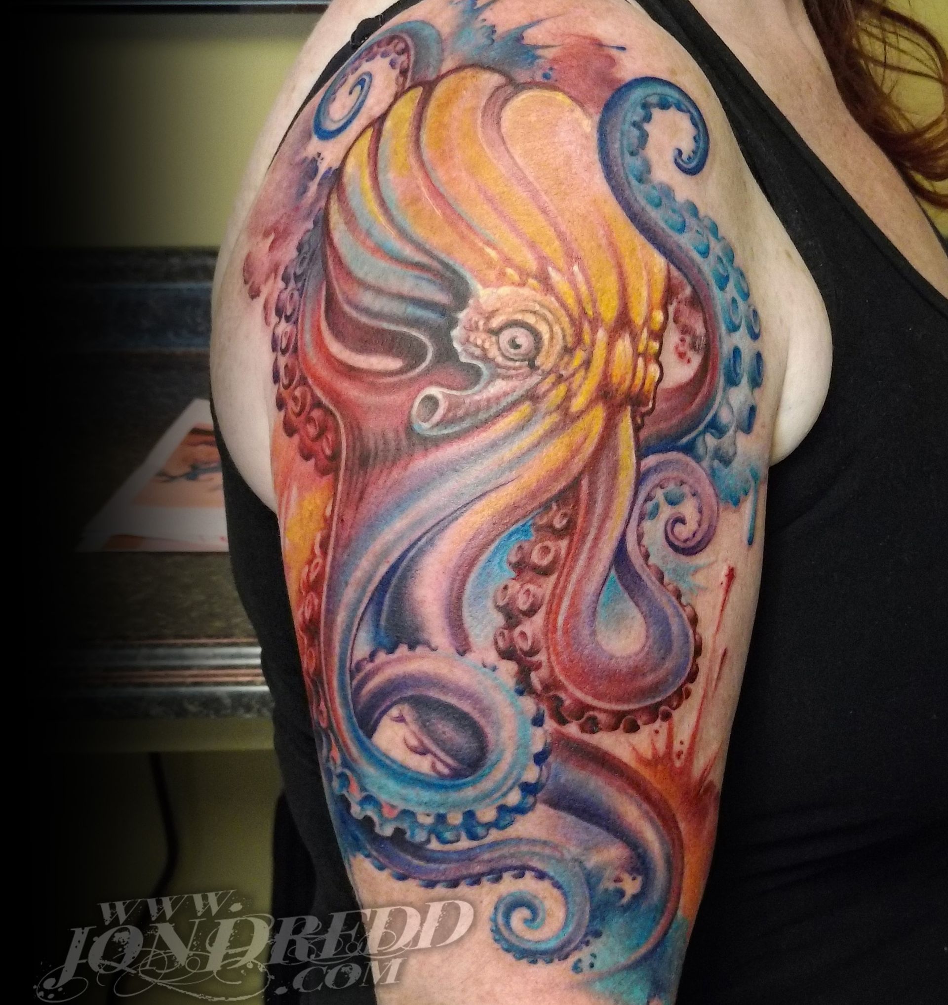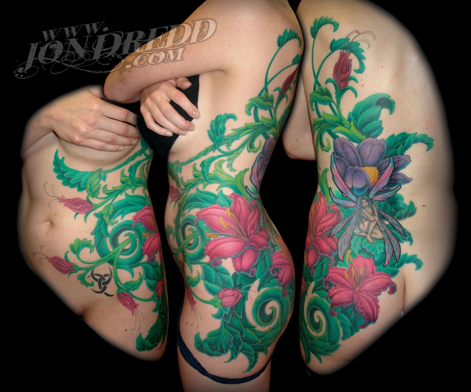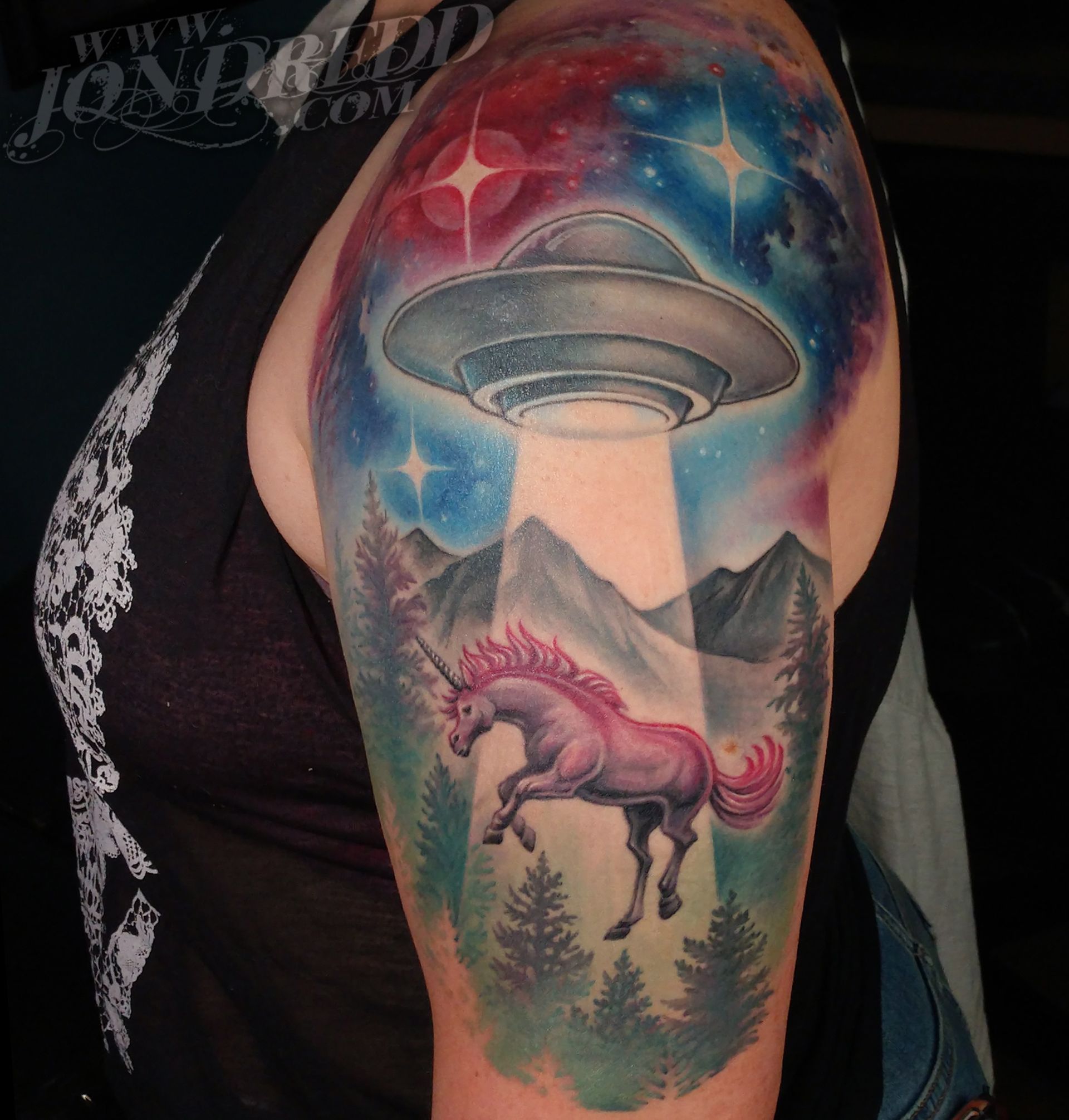 My name is Jonathan Kellogg, but many know me as "Jon Dredd". My earliest memories as a child involve creating artwork with friends, and from a young age, I was known to always have a book of my drawings in tow. I found my early art inspiration through my love for comic books, fantasy art, science fiction, and graffiti, which I still credit to the style of work I do today. I may be best known for my large-scale, full-color work, but I also enjoy tattooing many other styles in addition to that. I started tattooing in 1997, and have spent many years since then devoted to improving my personal tattoo techniques and bringing all of my work to the highest levels possible to provide my unique skill set to all of my clients. I love that every project can have a magical reveal when completed, and am always excited to see how happy both my client and I are with the final outcome. The styles of tattoos I am interested in most are "fantasy", "unrealistic realism", "new school", "bio-work", "celestial", "sacred geometry" work, or anything focused on "imagery telling a story", but I am open to many themes for my tattoo projects. When designing a tattoo, I prefer large bold imagery that flows well with the shape of the body that it's placed on, as well as concepts that consist of multiple layers of content that tell a visual story and flow well with the shape of the body.