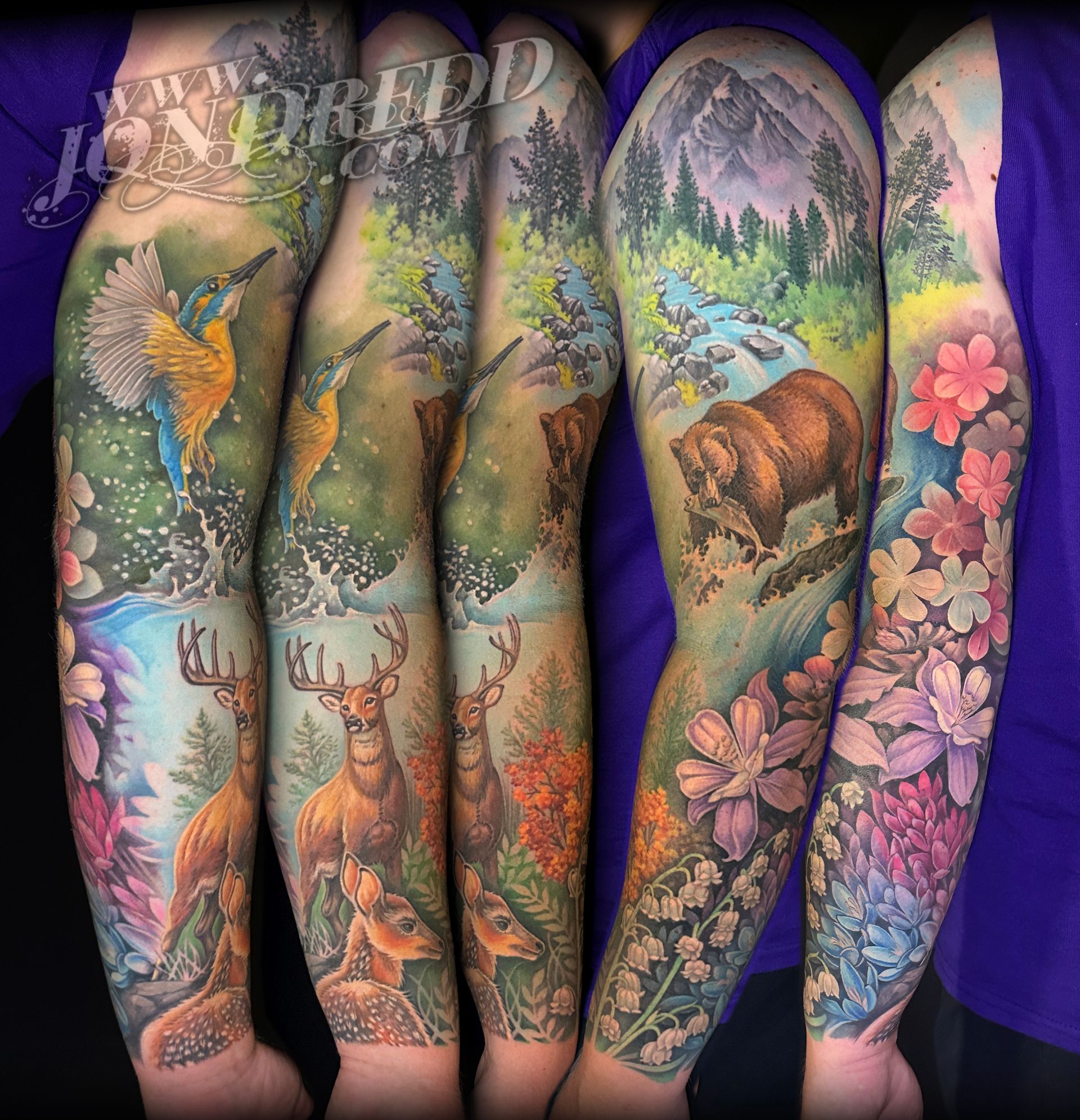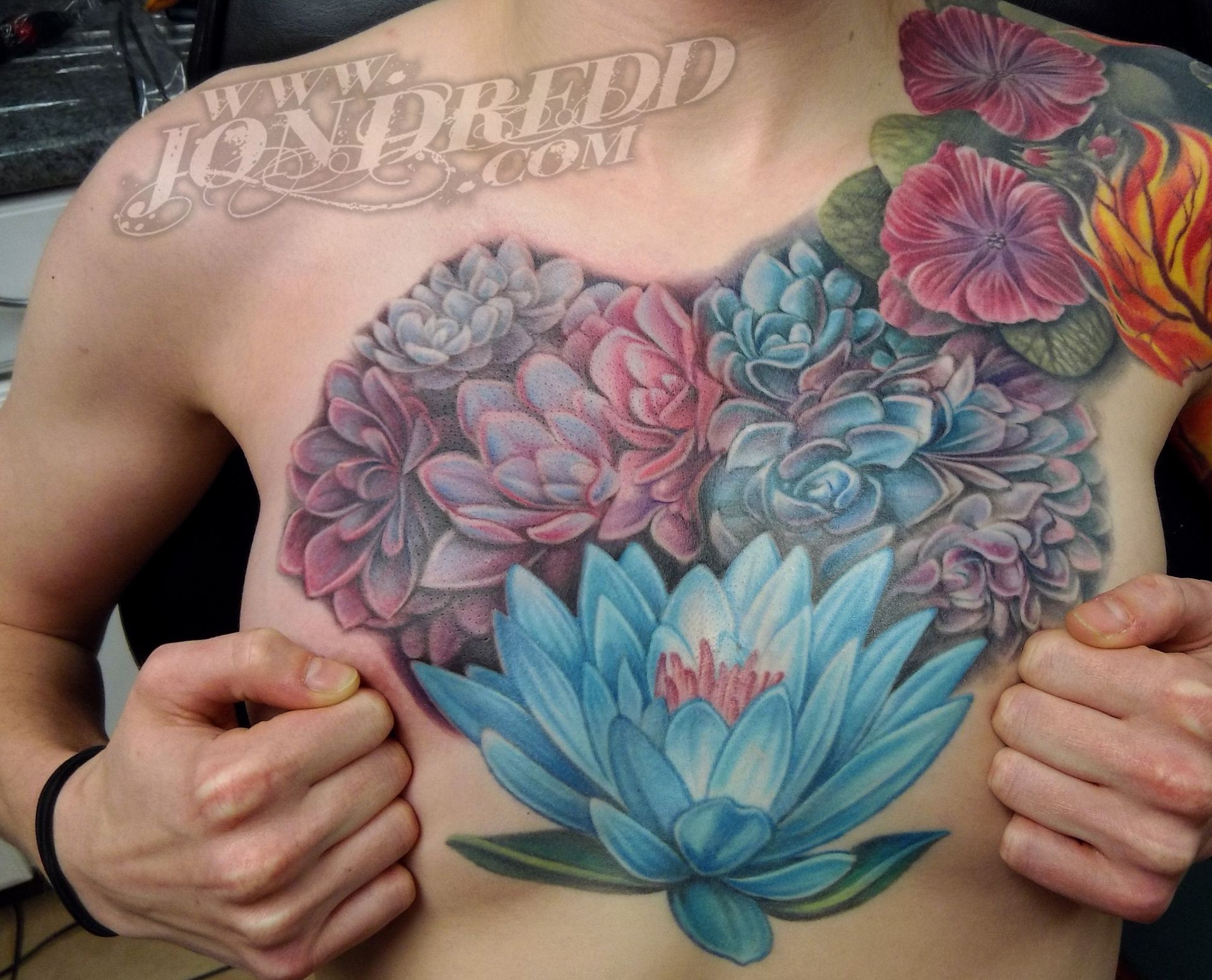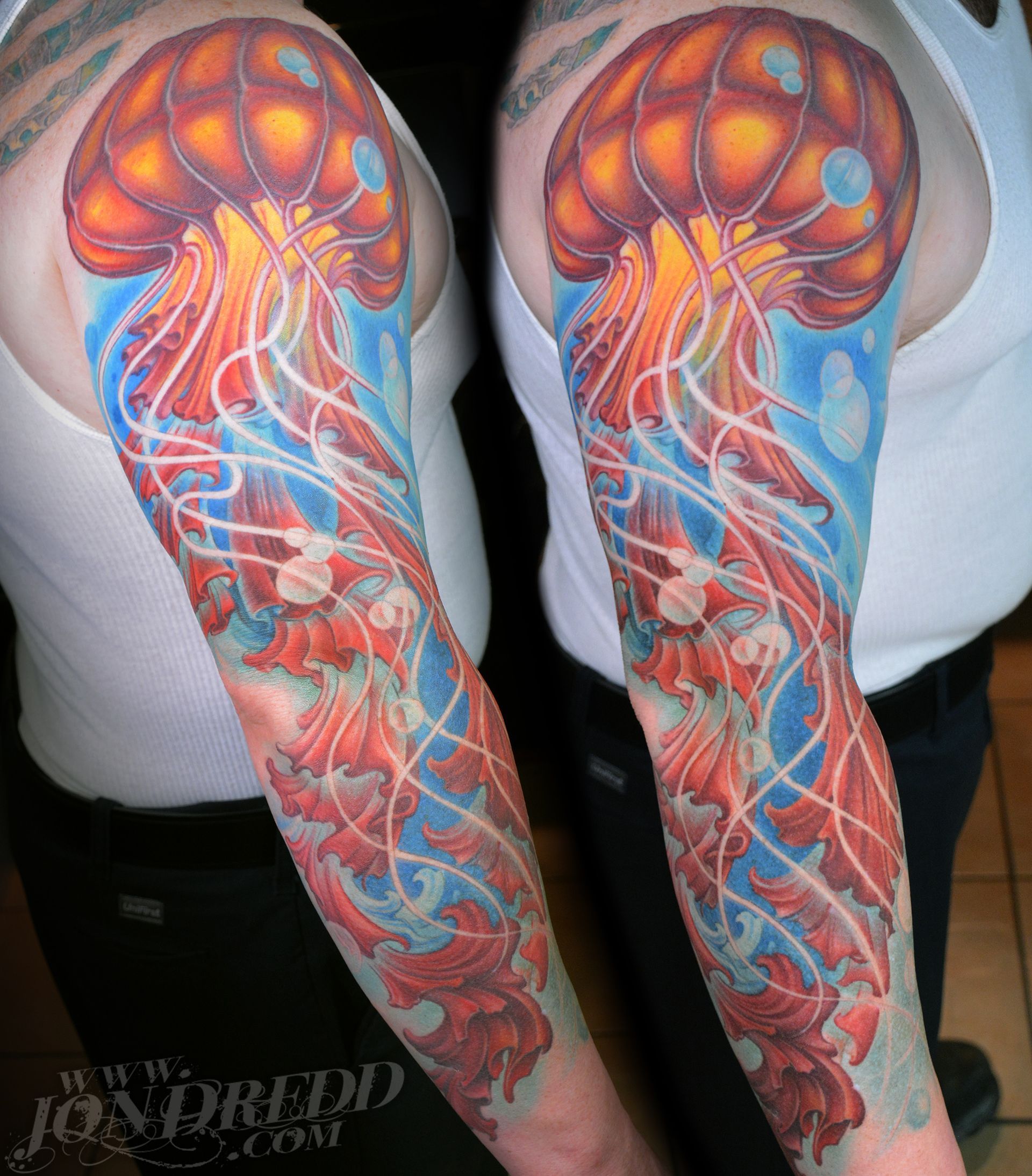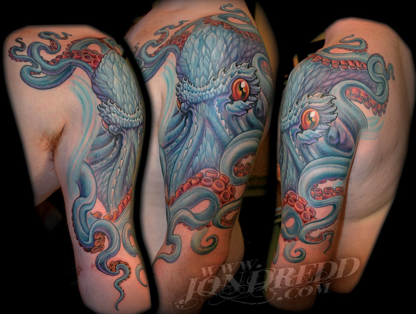 My name is Jonathan Kellogg, but many know me as "Jon Dredd". My earliest memories as a child involve creating artwork with friends, and from a young age, I was known to always have a book of my drawings in tow. I found my early art inspiration through my love for comic books, fantasy art, science fiction, and graffiti, which I still credit to the style of work I do today. I may be best known for my large-scale, full-color work, but I also enjoy tattooing many other styles in addition to that. I started tattooing in 1997, and have spent many years since then devoted to improving my personal tattoo techniques and bringing all of my work to the highest levels possible to provide my unique skill set to all of my clients. I love that every project can have a magical reveal when completed, and am always excited to see how happy both my client and I are with the final outcome. The styles of tattoos I am interested in most are "fantasy", "unrealistic realism", "new school", "bio-work", "celestial", "sacred geometry" work, or anything focused on "imagery telling a story", but I am open to many themes for my tattoo projects. When designing a tattoo, I prefer large bold imagery that flows well with the shape of the body that it's placed on, as well as concepts that consist of multiple layers of content that tell a visual story and flow well with the shape of the body.
