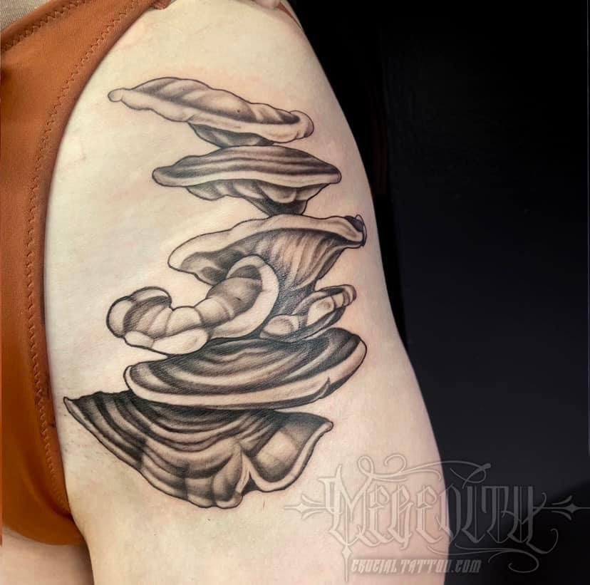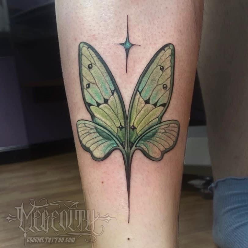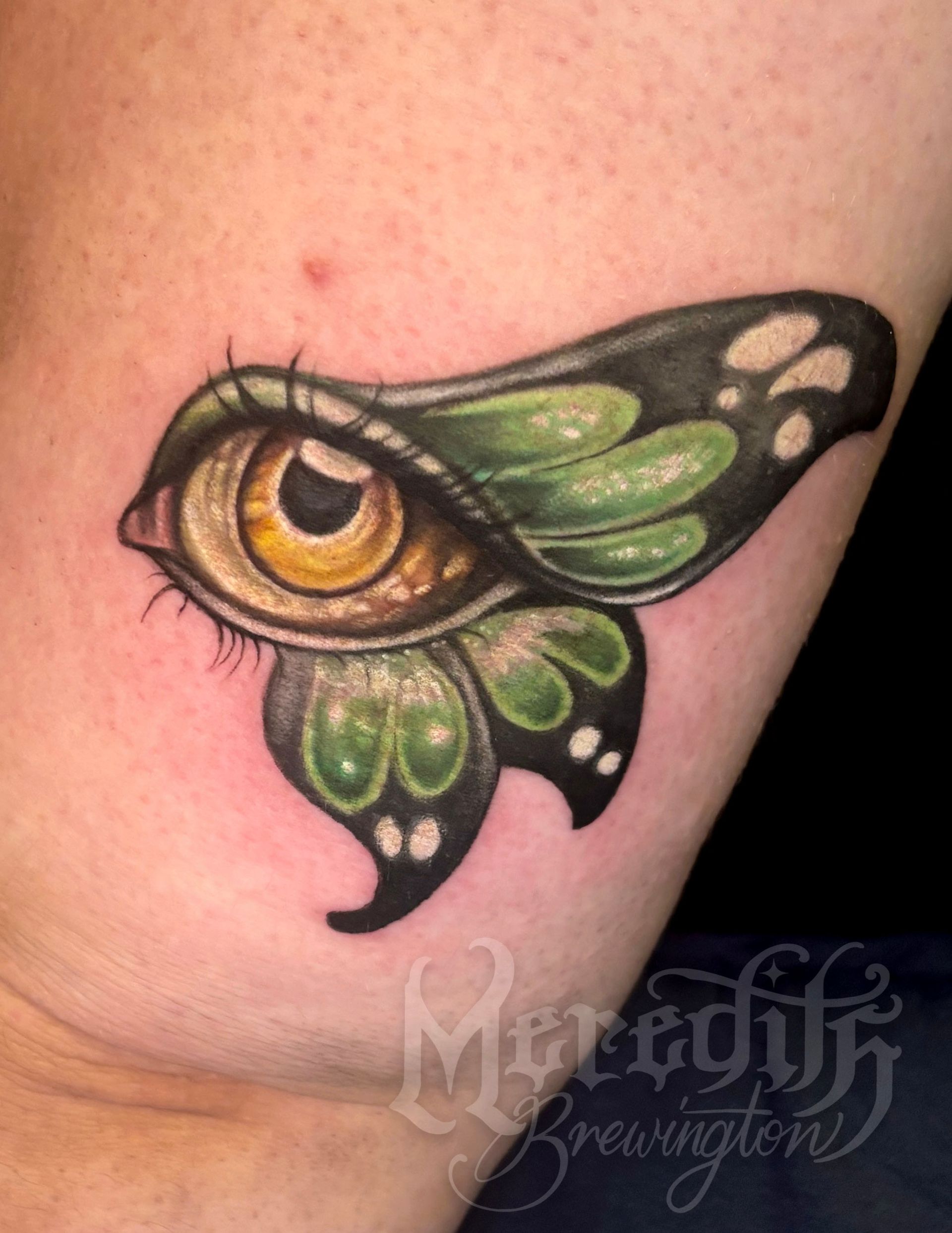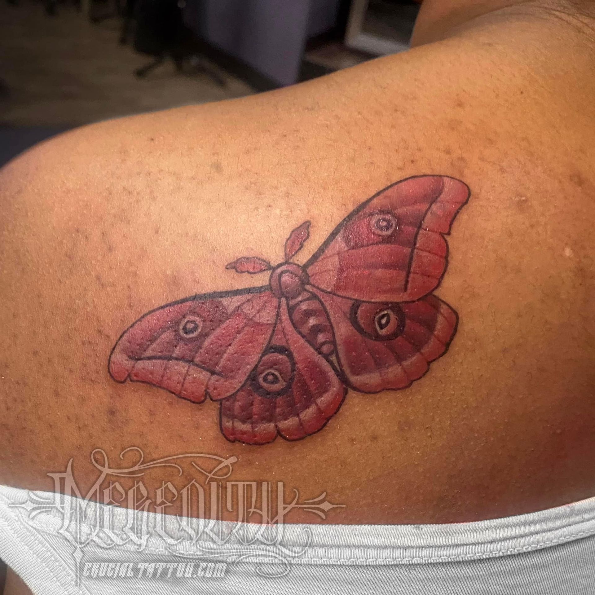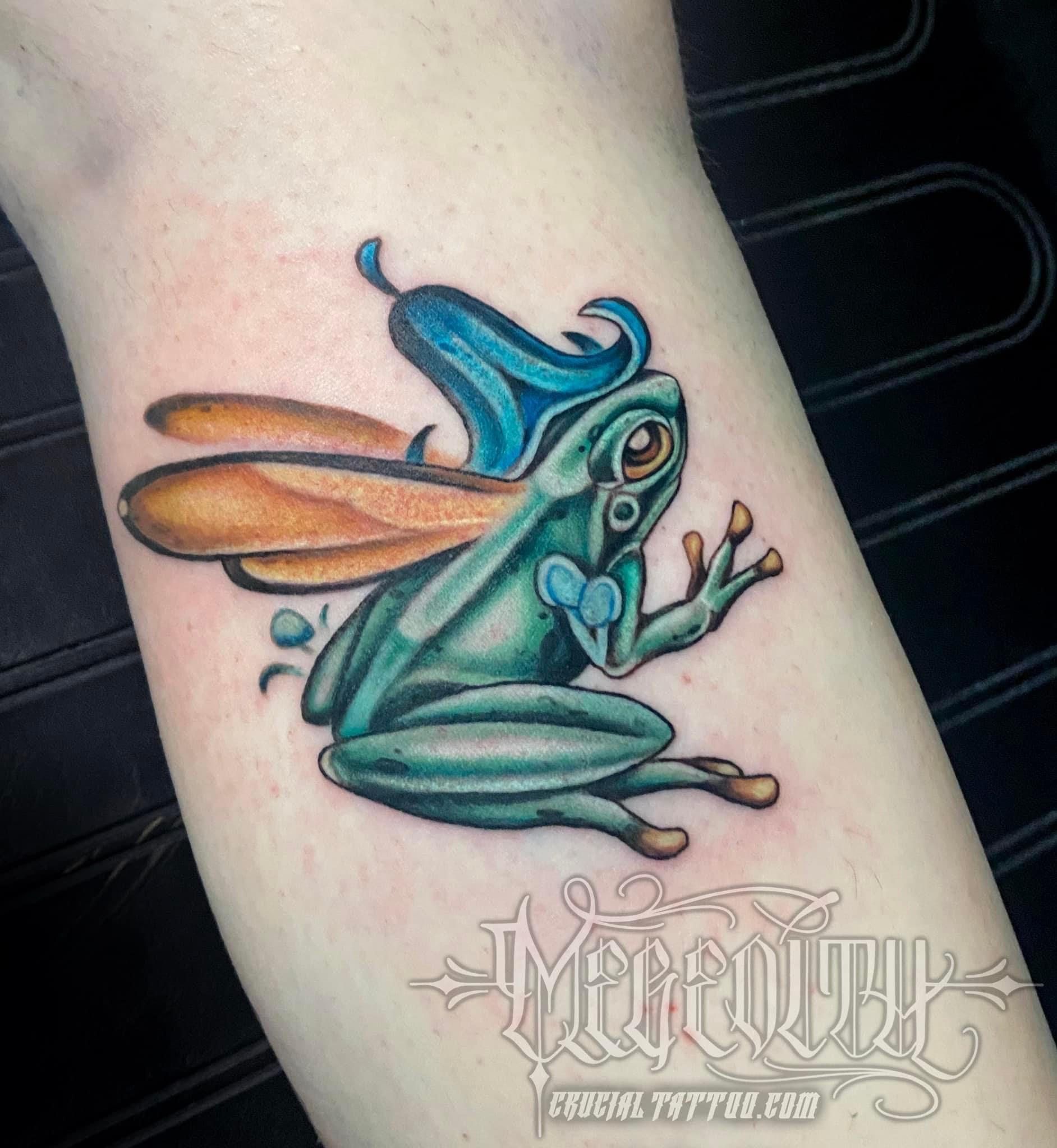 Meredith has a fascination with the natural world and often designs imagery inspired by anything from scientific "real world" illustrations to fantastical magical creatures. She loves being able to tell a story with her work, using mystical backgrounds and strong light sources. Her use of negative space as a design element to create flow can be seen in most of her large-scale work. Meredith's favorite subjects are fantasy figure work, like mermaids, fairies, and fauns. As well as animal portraits or insects in a wide range of styles. While she likes to encompass a broad range of different styles, most of her tattoo work could be categorized as Fantasy, illustrative, and Surrealism.