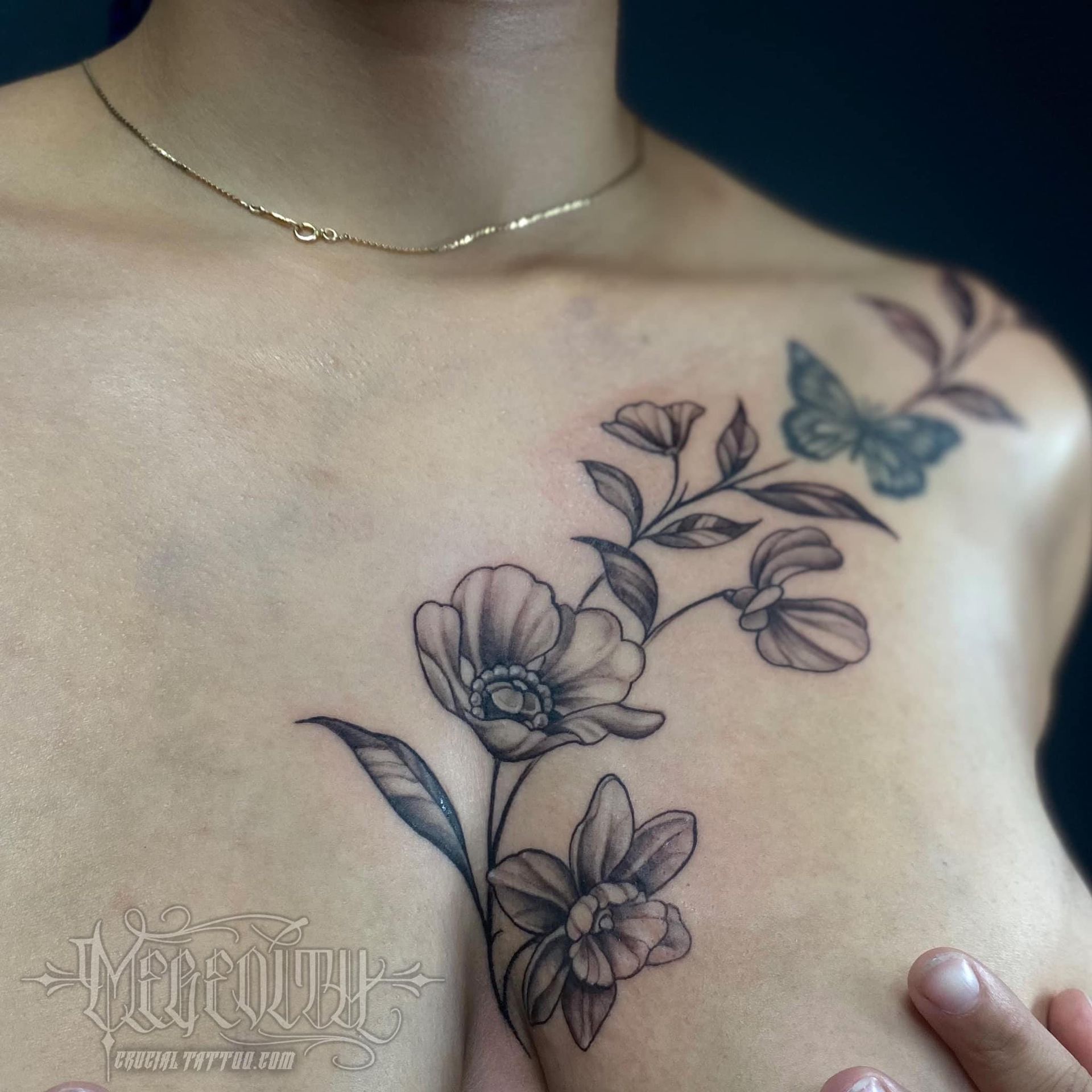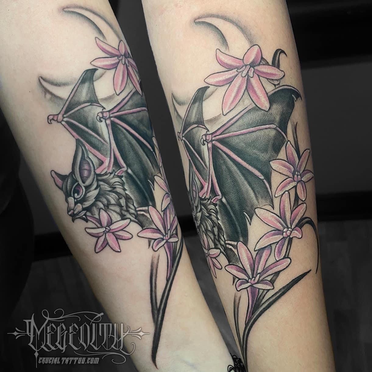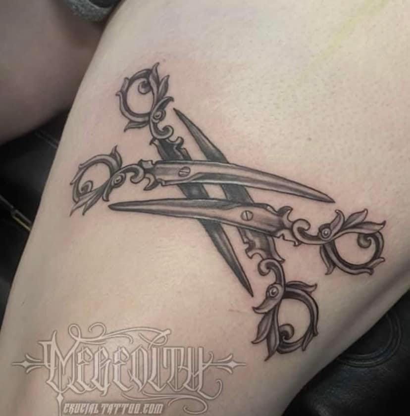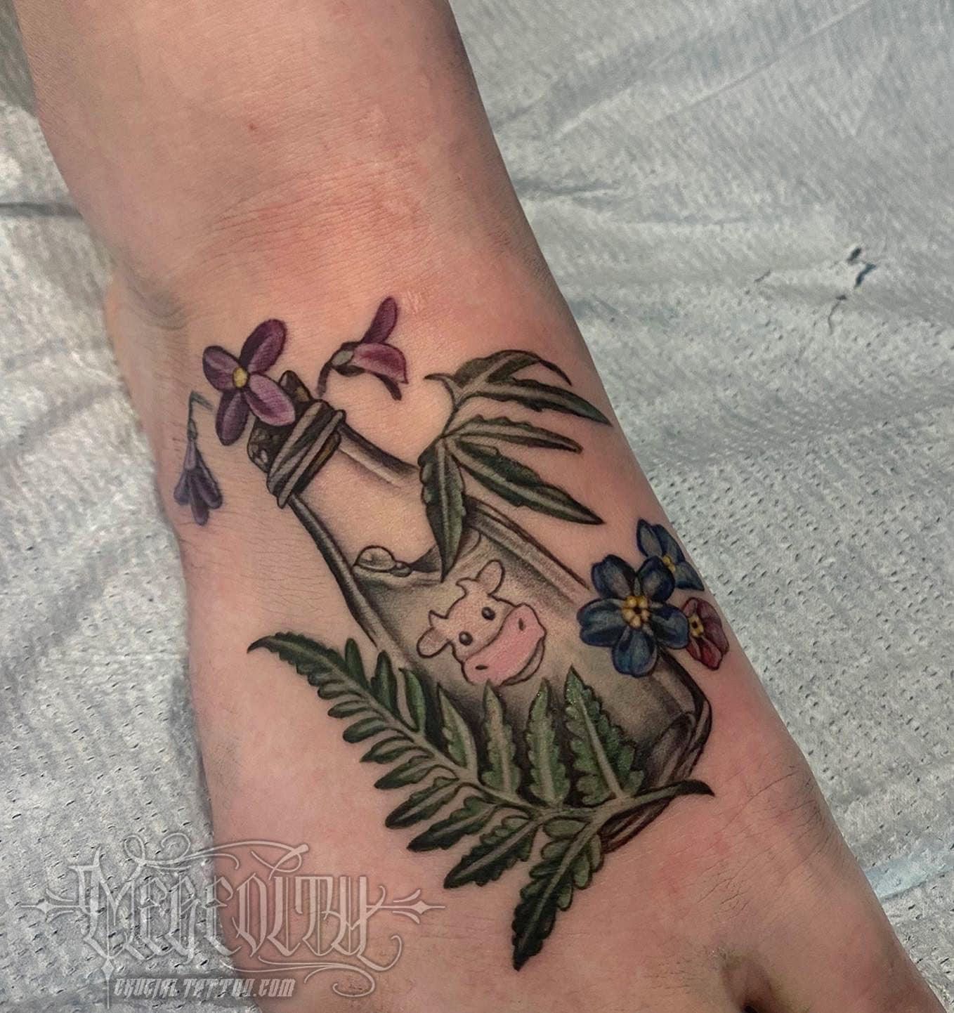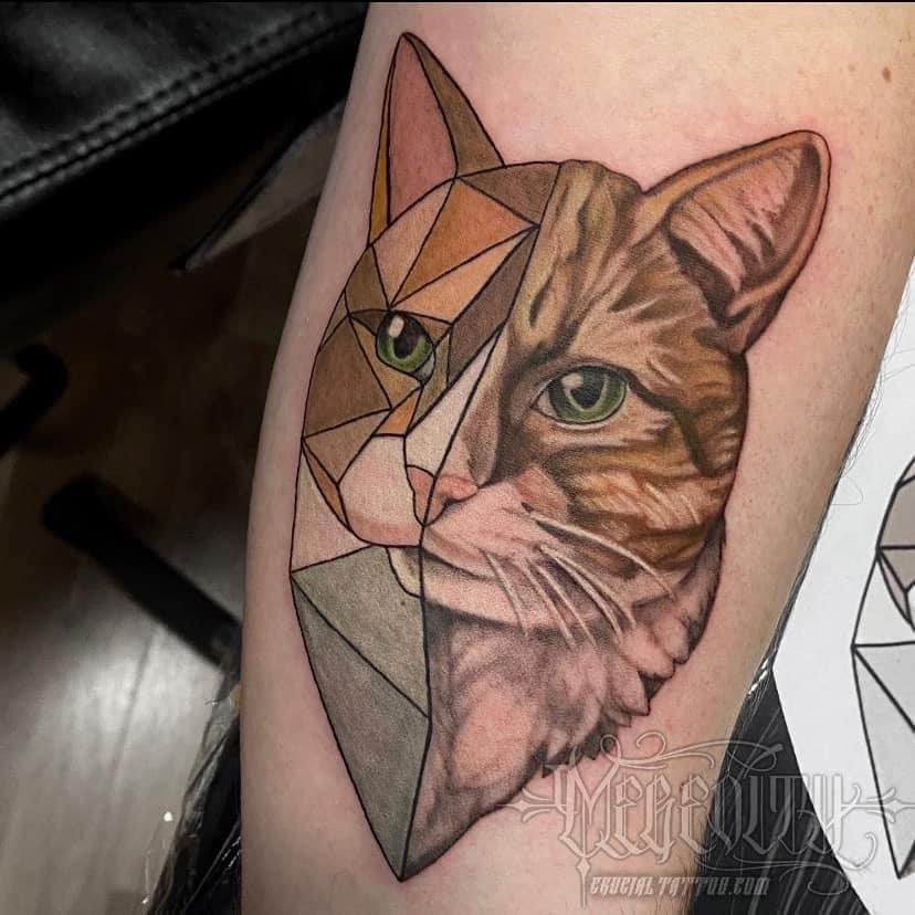 Meredith has a fascination with the natural world and often designs imagery inspired by anything from scientific "real world" illustrations to fantastical magical creatures. She loves being able to tell a story with her work, using mystical backgrounds and strong light sources. Her use of negative space as a design element to create flow can be seen in most of her large-scale work. Meredith's favorite subjects are fantasy figure work, like mermaids, fairies, and fauns. As well as animal portraits or insects in a wide range of styles. While she likes to encompass a broad range of different styles, most of her tattoo work could be categorized as Fantasy, illustrative, and Surrealism.
