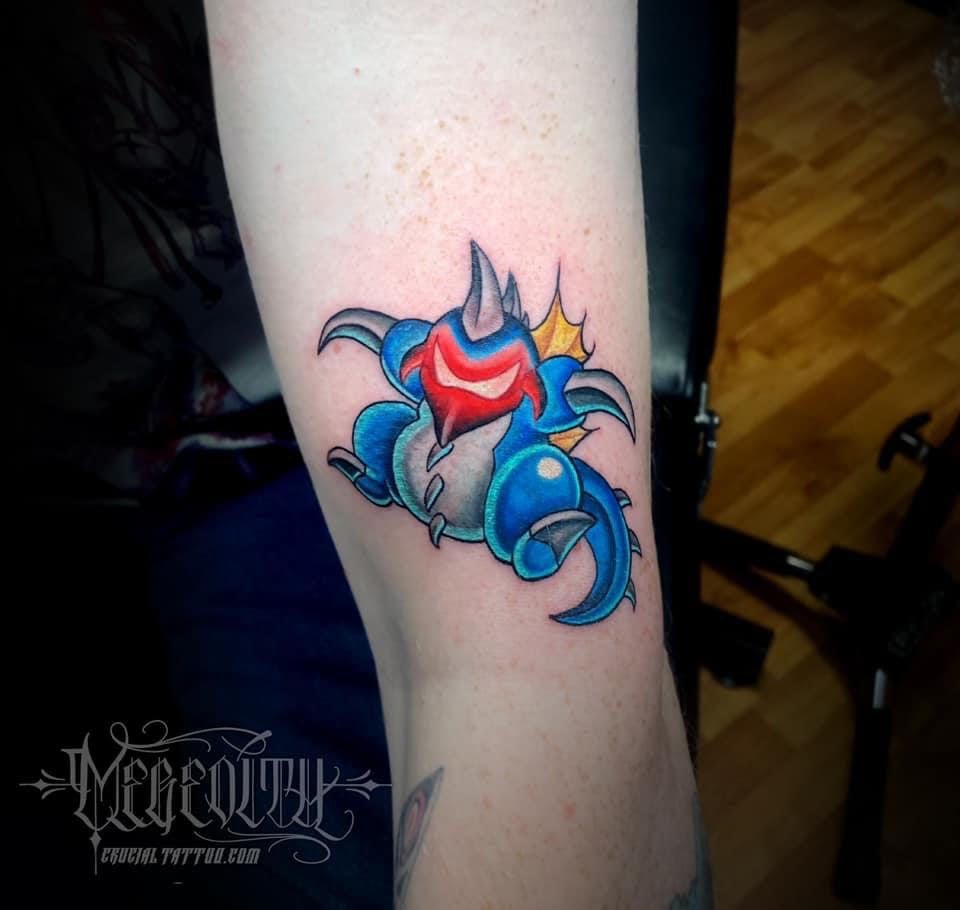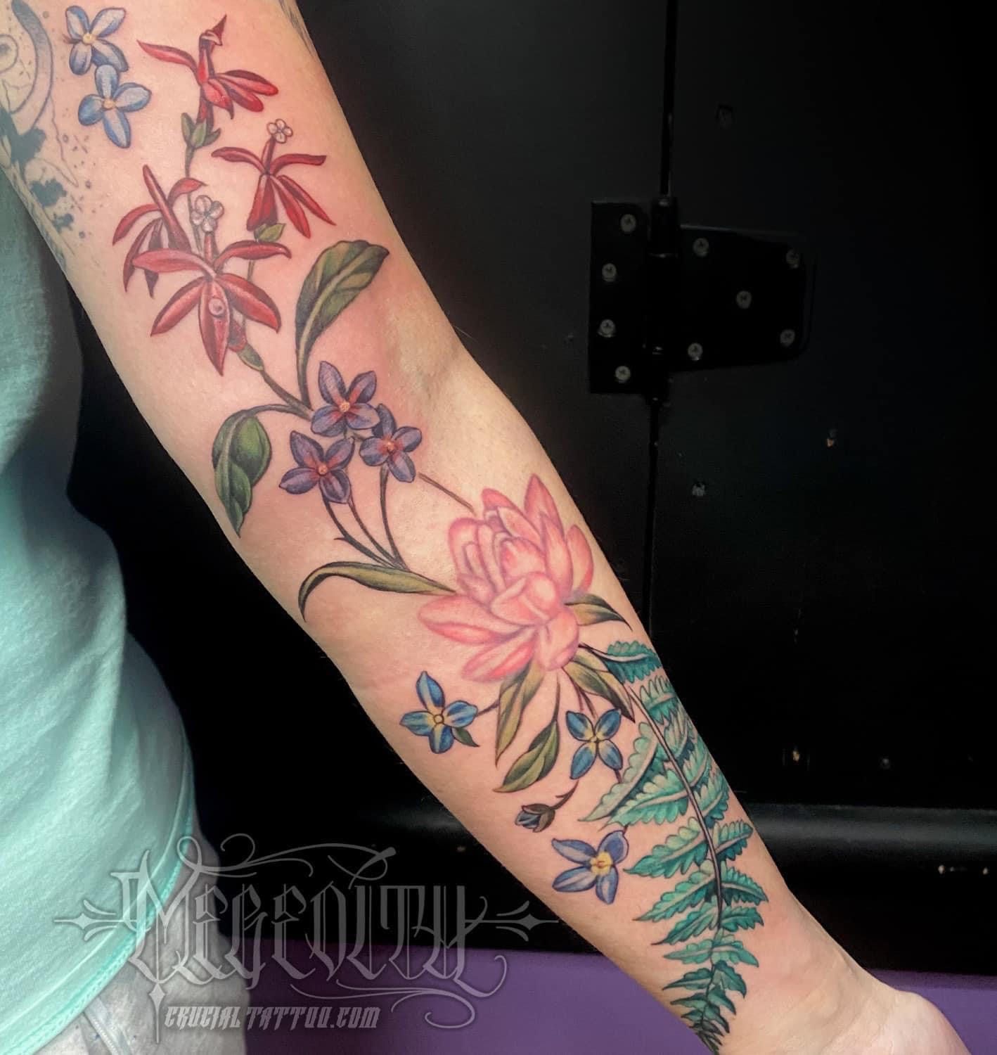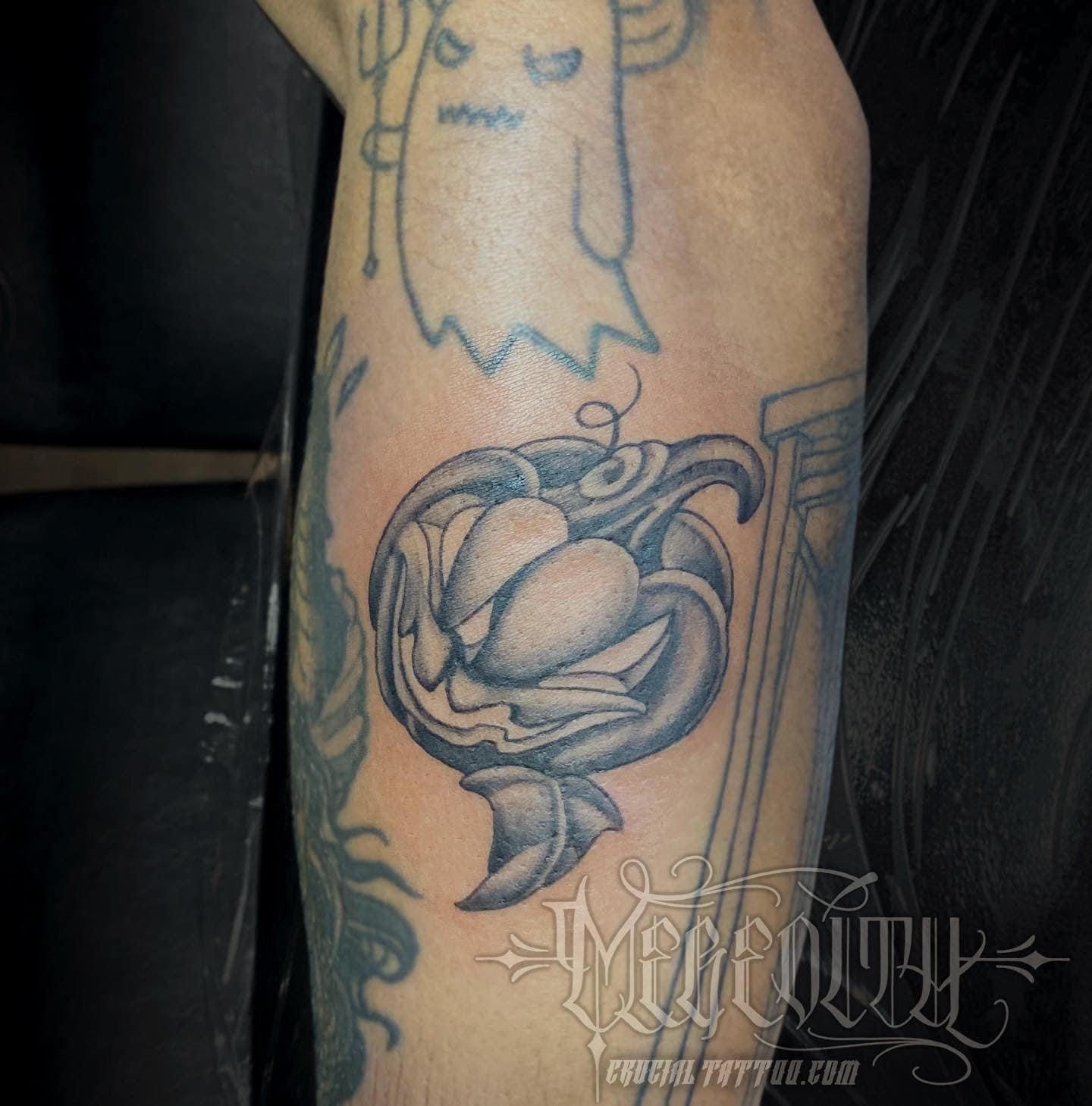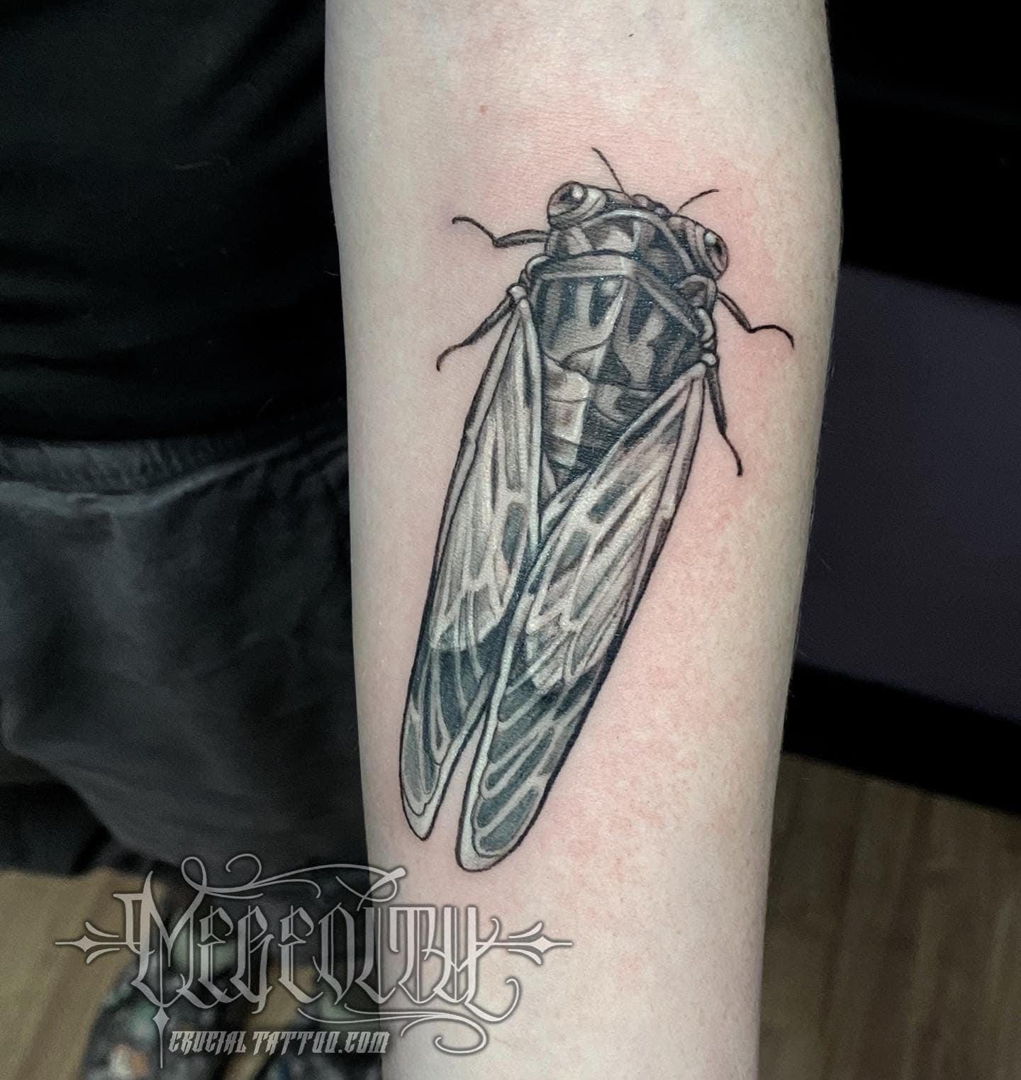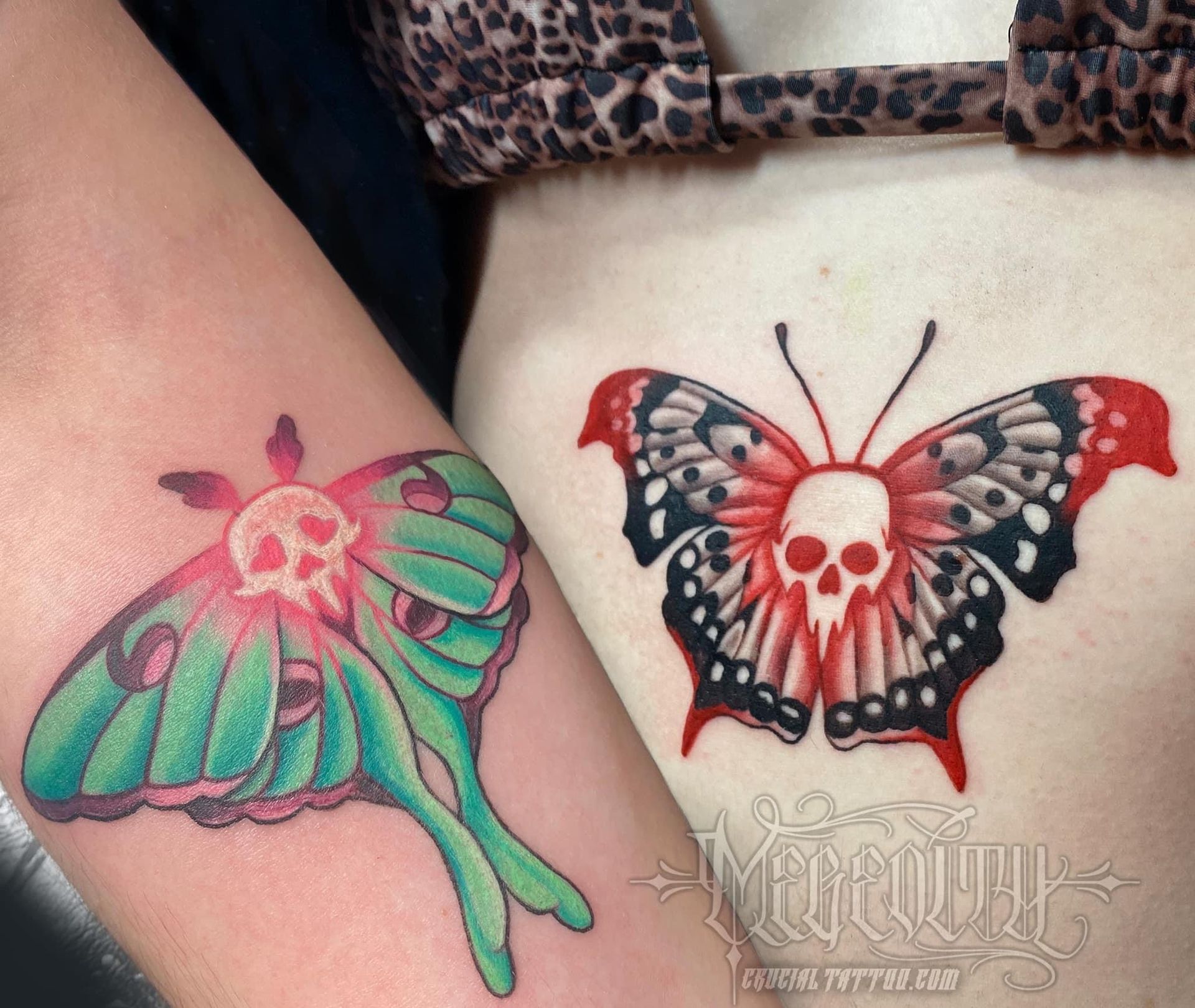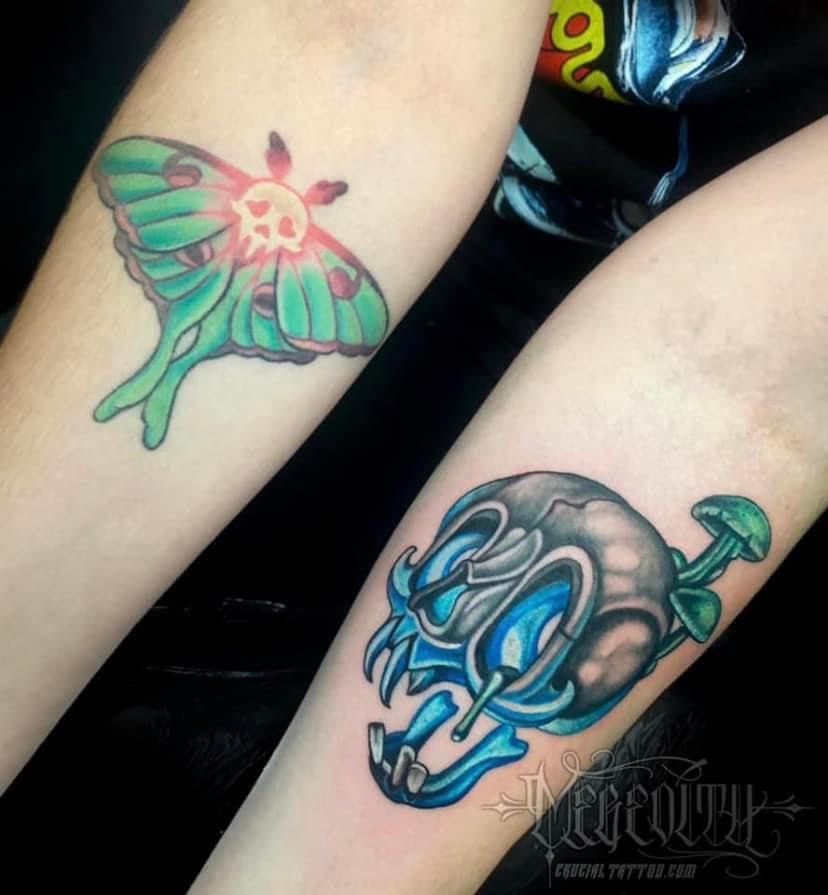 I started working with Crucial Tattoo Studio in 2018 and later began my tattoo apprenticeship under Jonathan Kellogg. I enjoy doing anything fantasy-related, from mythical beasts based on the natural world, to animated pop-culture creations. I also appreciate doing my versions of scientific illustrations, as it allows me to research more about the world we live in. I currently have a huge focus on insects, especially since I taxidermy them in my free time. I will always be excited to tattoo a bug!
