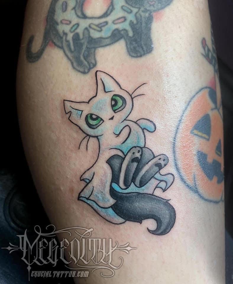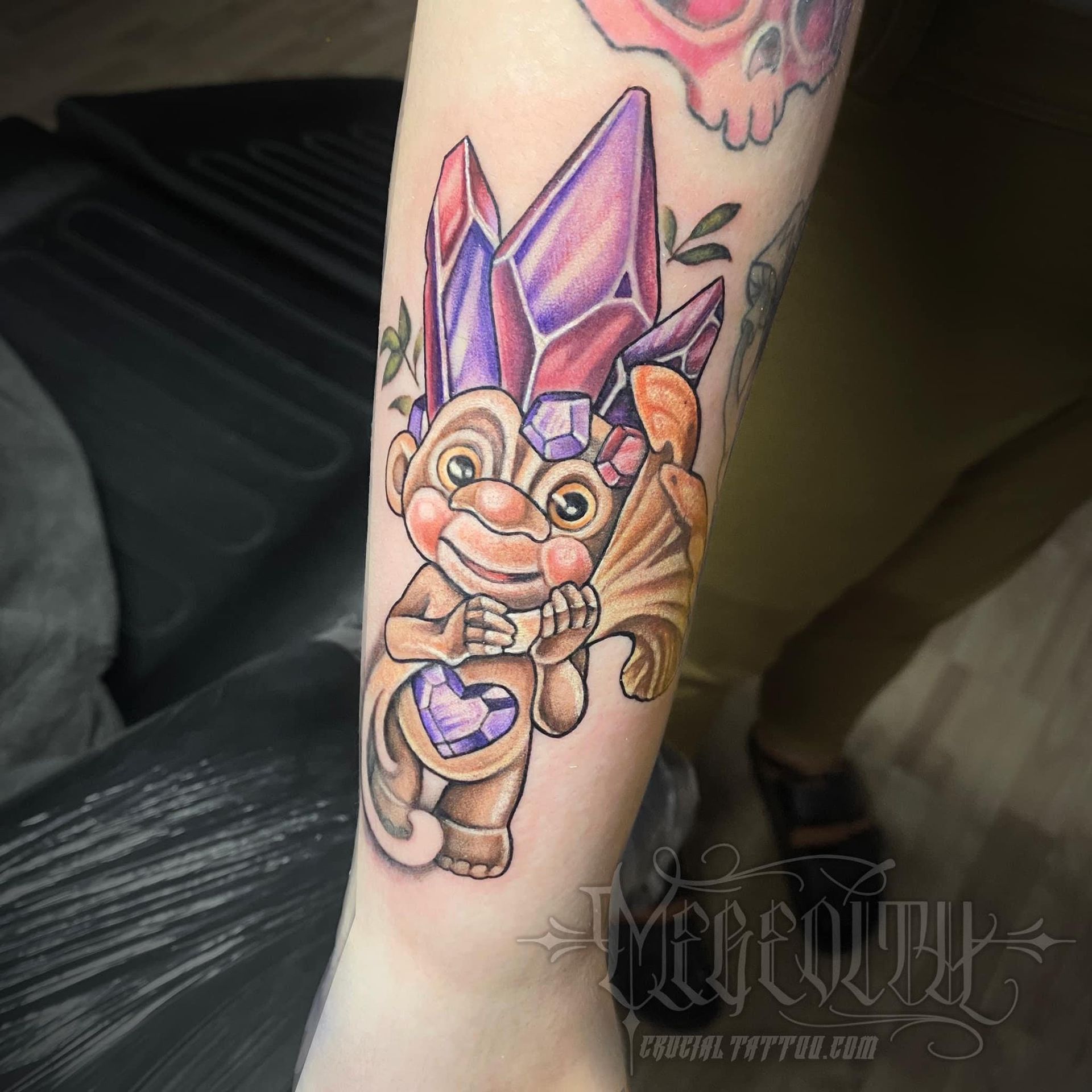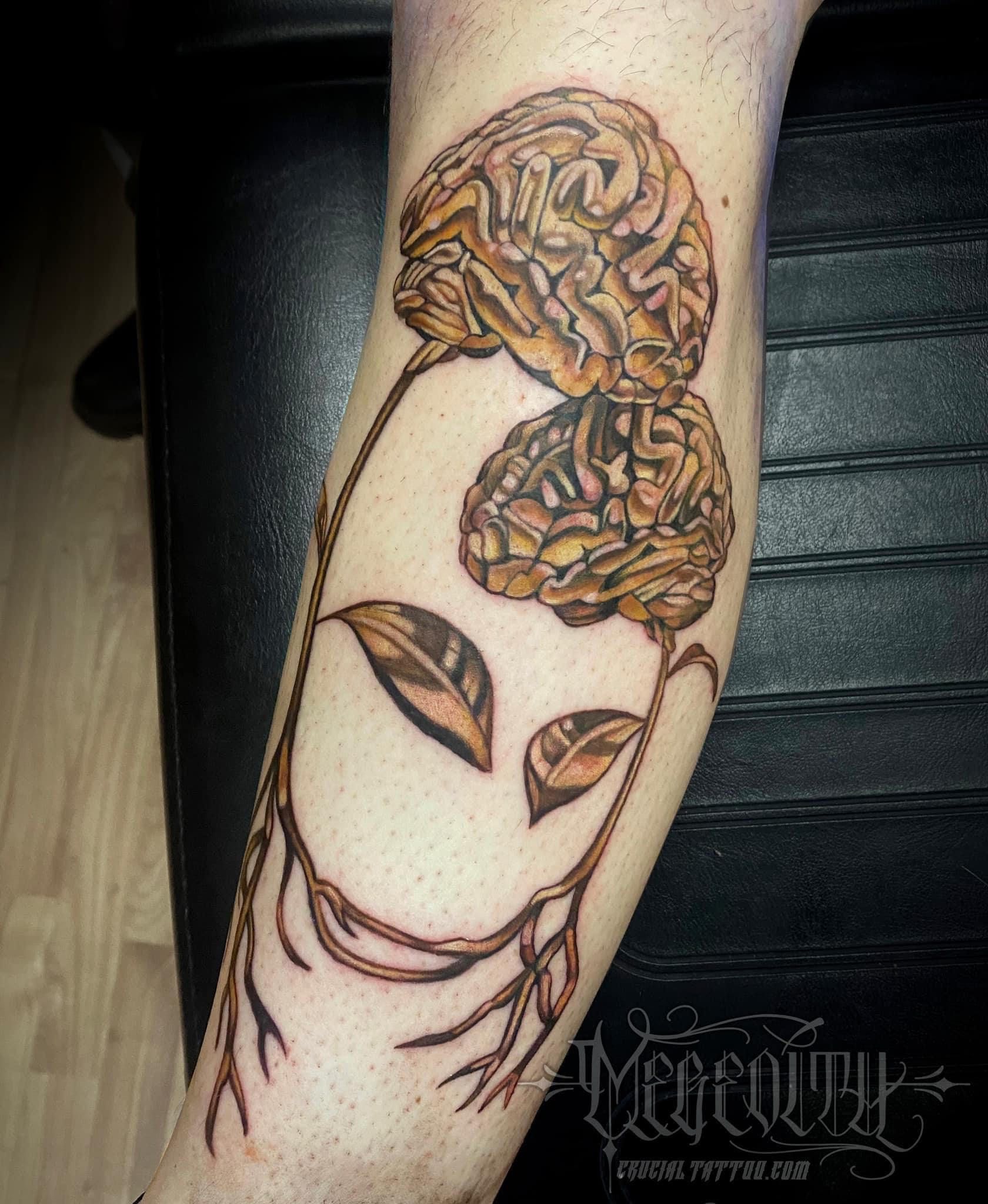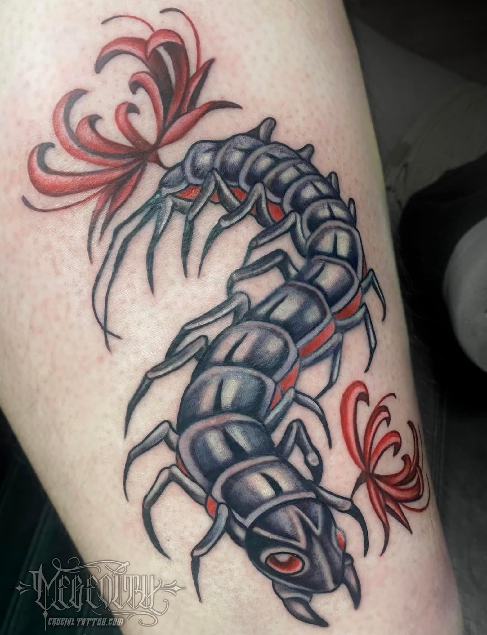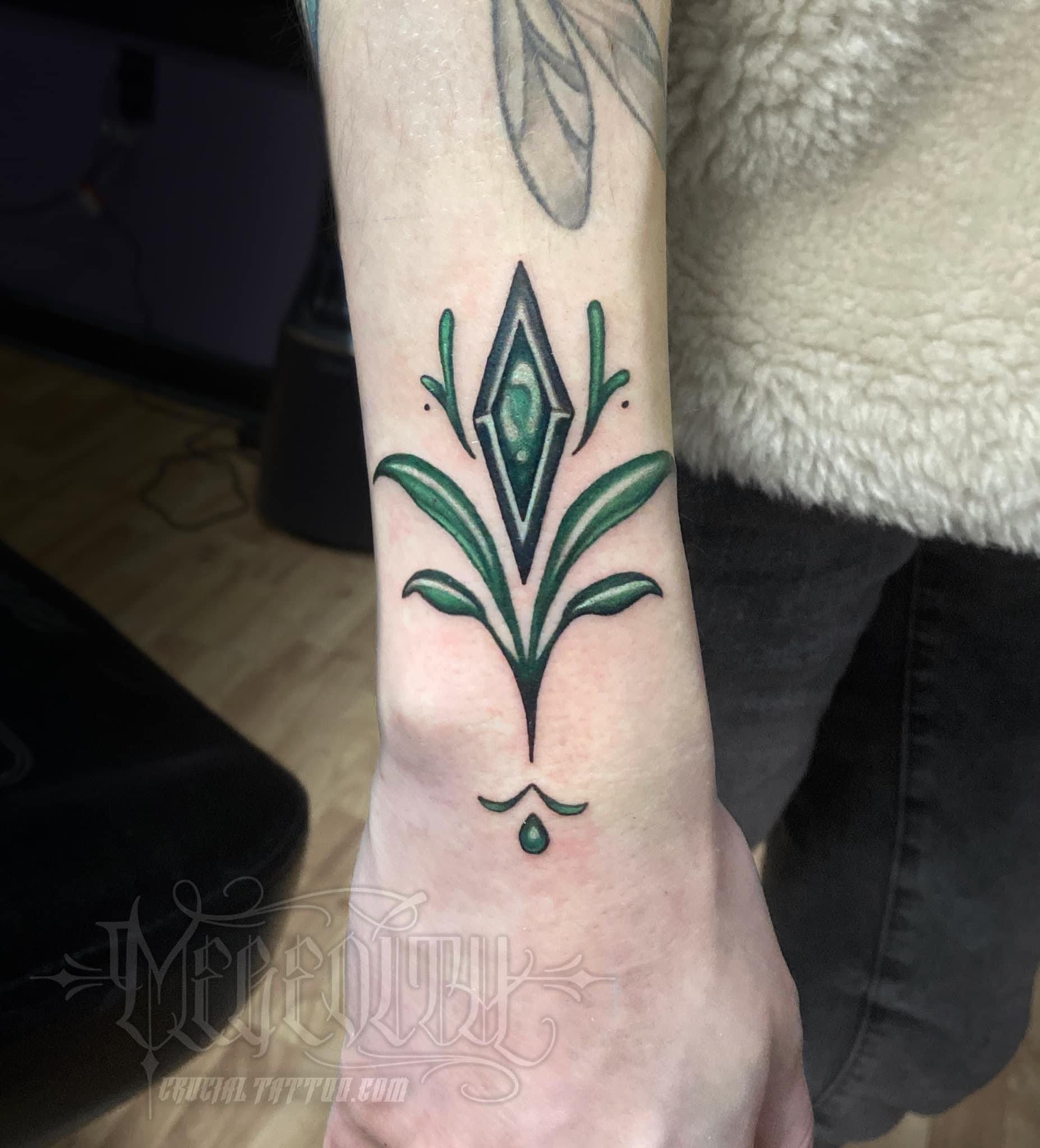 I started working with Crucial Tattoo Studio in 2018 and later began my tattoo apprenticeship under Jonathan Kellogg. I enjoy doing anything fantasy-related, from mythical beasts based on the natural world, to animated pop-culture creations. I also appreciate doing my versions of scientific illustrations, as it allows me to research more about the world we live in. I currently have a huge focus on insects, especially since I taxidermy them in my free time. I will always be excited to tattoo a bug!