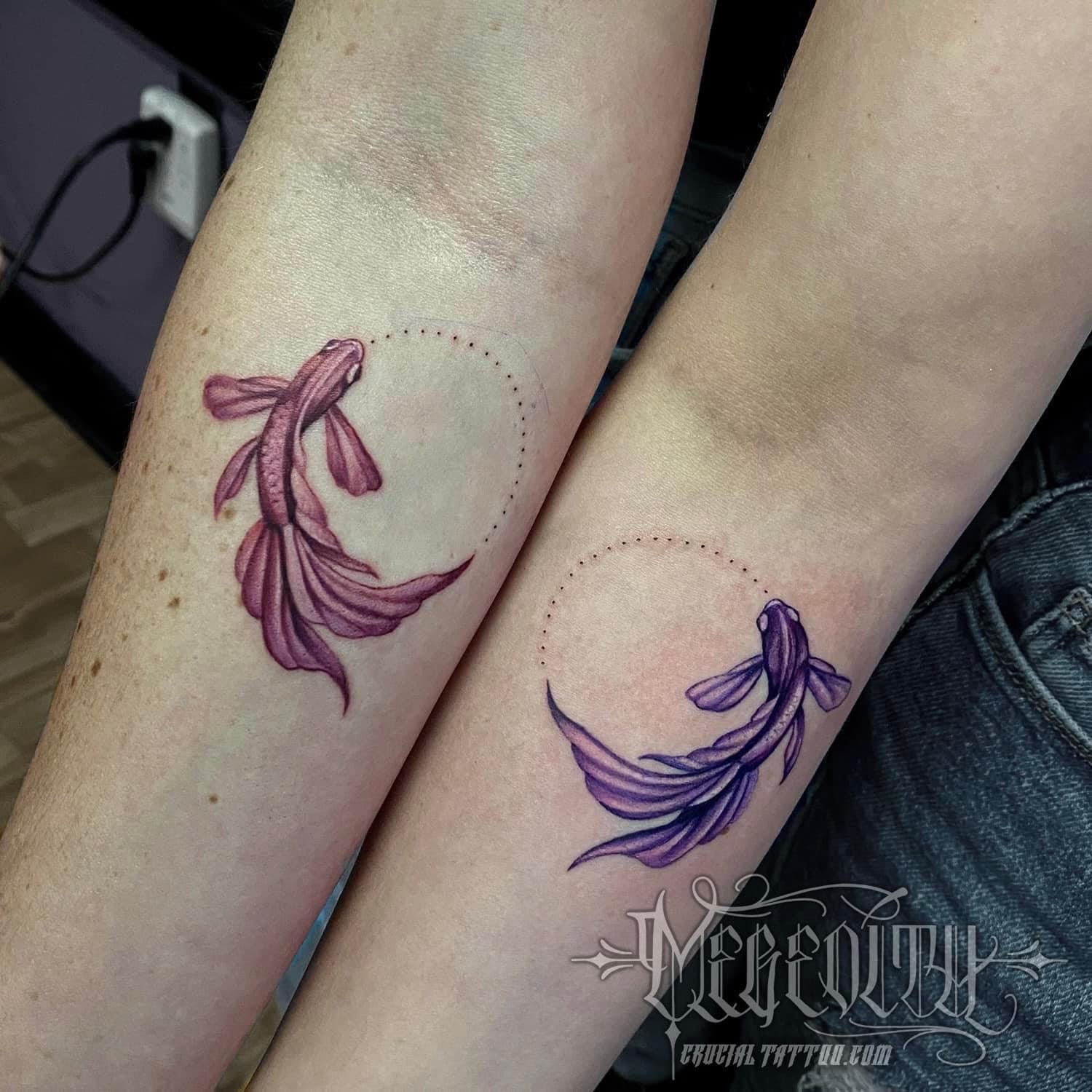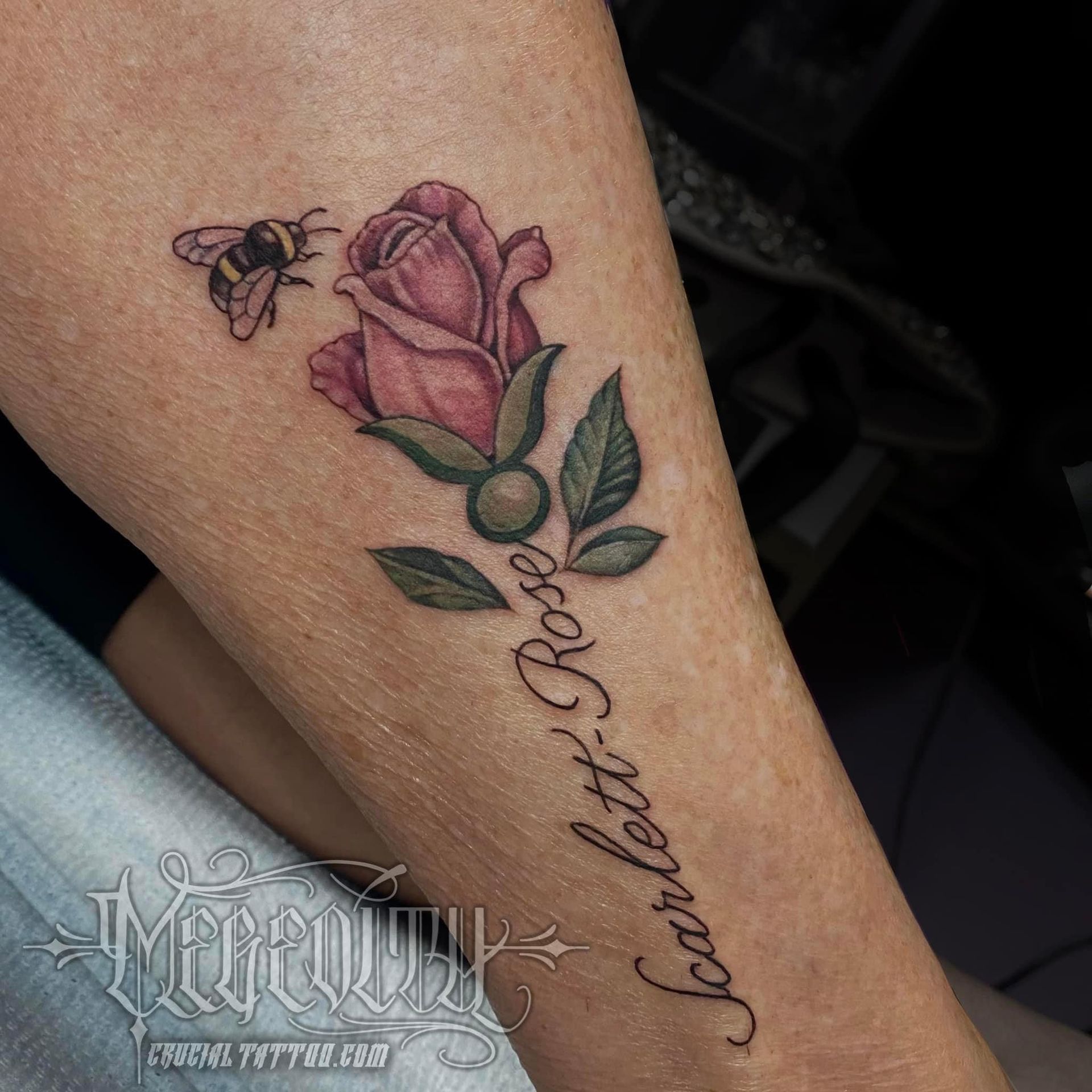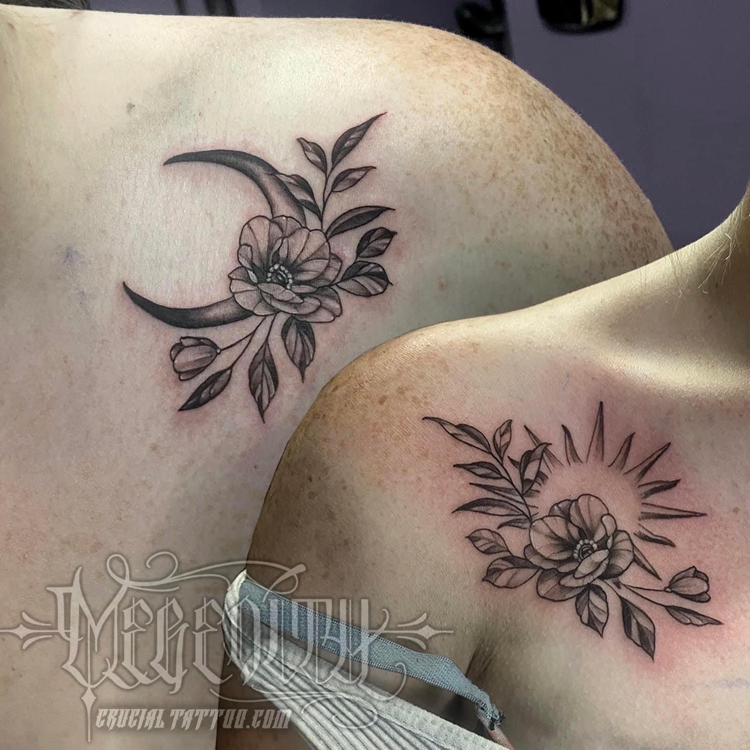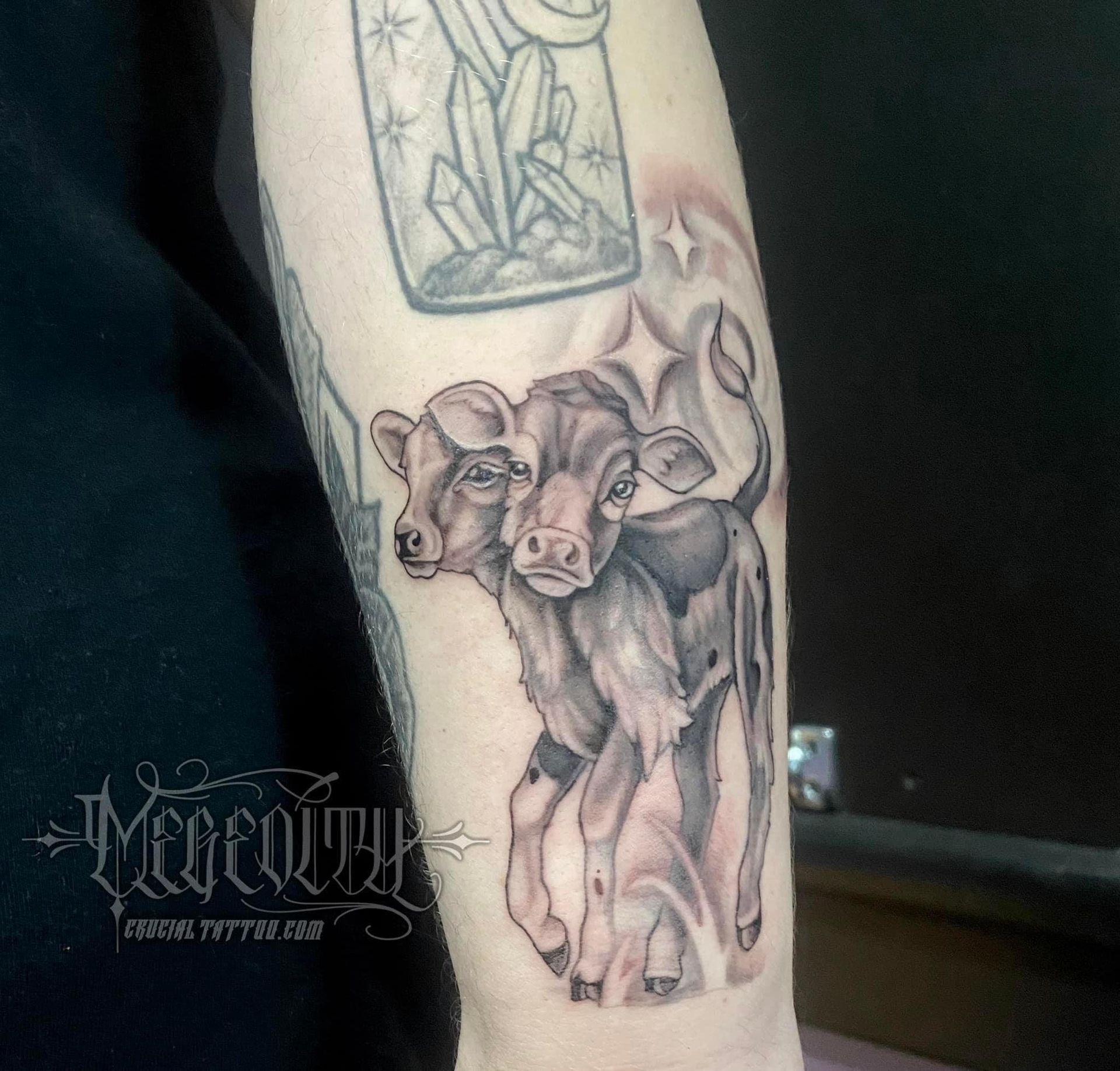 Meredith has always had an interest in drawing, with some of her first memories being sketching on paper. She became more renowned in the local community around 2016 when she started to focus on realistic portrait oil paintings, and showcasing them in local galleries. Portraiture has always been a huge focus in her work since she loves the expressiveness that can be shown through painting human emotions. She regularly expresses herself through painting and drawing, which helps her creatively develop her tattoos and style, and was classically trained in oil painting in the Salisbury area using the “alla prima” technique and life studies. Meredith has been with Crucial Tattoo Studio since 2018 and works along with her identical twin sister, Madison Brewington. They both underwent their tattoo apprenticeships at the studio together under Jonathan Kellogg and even performed their first tattoos on one another under Jon's careful guidance.
